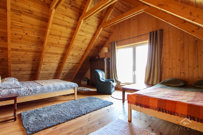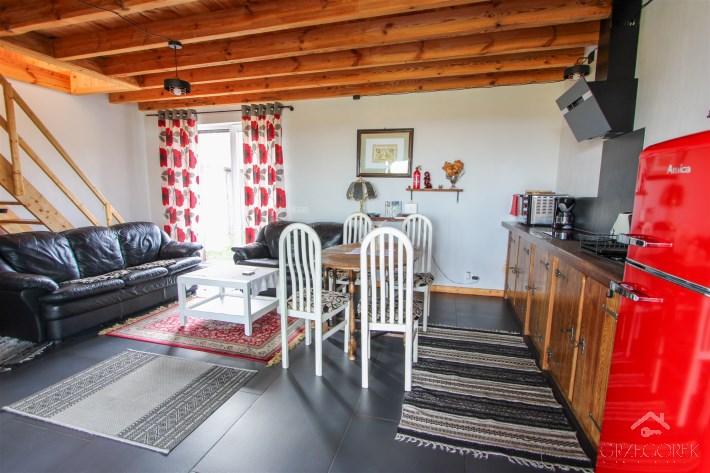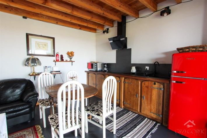 Przytulny dom o powierzchni około 70m2 - dodatkową powierzchnią jest 40-metrowy taras na dole. Dom powstał w 2023 roku w technologii drewnianej. Może być sprzedany z pełnym wyposażeniem i umeblowaniem. Ogrzewanie: kominek z rozprowadzeniem. Dom cały czas funkcjonuje z powodzeniem jak agroturystyka.