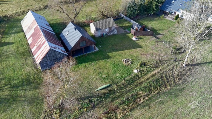 Działka na terenie Biebrzańskiego Parku Narodowego tuż obok starorzecza Biebrzy, o powierzchni 3400 m2, na której posadowione są dwa domy i murowany budynek gospodarczy. Dostępne media: woda ze studni i gminna, prąd (panele fotowoltaiczne), szambo (w drewnianym domku szambo ekologiczne).