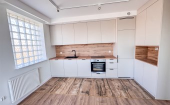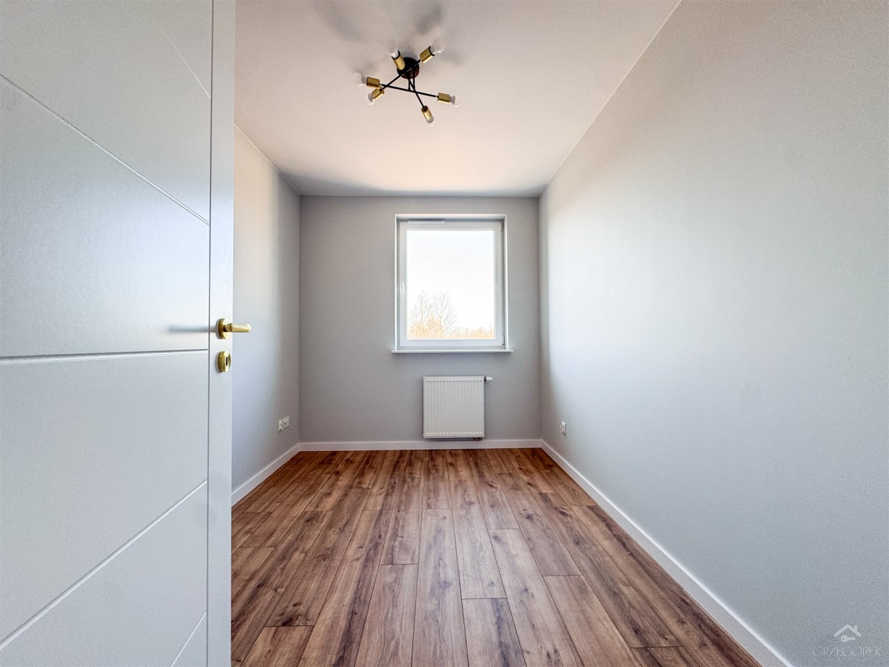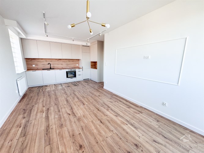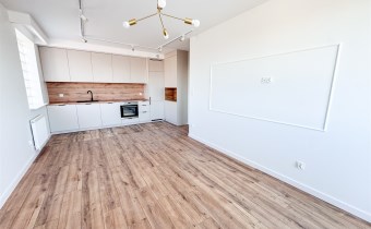 Na podłogach położone jasne panele, ściany w przyjemnych kolorach, wykończona łazienka z wanną i dużym lustrem oraz zabudową, w gustownych barwach, a także wygodna i elegancka kuchnia ze sprzętem: lodówką w zabudowie, piekarnikiem elektrycznym, płytą indukcyjną, okapem i zmywarką.