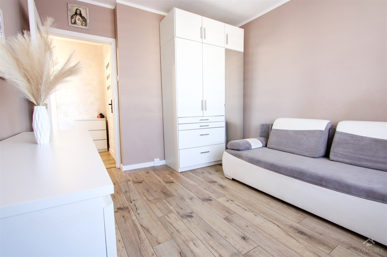 Standard mieszkania dobry, po częściowym remoncie kilka lat temu, wymieniono również instalację elektryczną. Całość wykończona w nowoczesnych kolorach z zachowaniem funkcjonalności pomieszczeń. W pokojach nowe panele, ściany malowane, nowocześnie wykończony korytarz z solidnymi drzwiami wejściowymi. Jedynie kuchnia i łazienka wymagają odświeżenia lub częściowego remontu. Praktycznie całe wyposażenie oraz meble widoczne na zdjęciach w cenie.